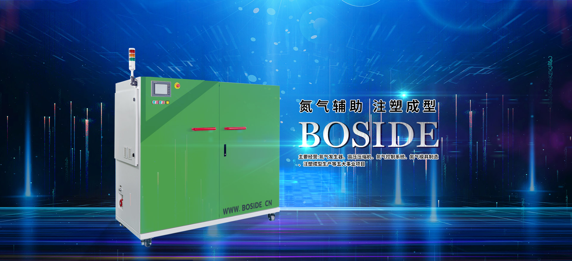浙江博思德( BOSIDE) 機械有限公司 是專業從事氮氣輔助注塑成型設備的生產、銷售;氣注塑工藝及氣模具的研發、應用;高壓氣體設備的生產、銷售及國外品牌代理等業務。主要經營:氮氣發生器、高壓壓縮機、氮氣控制系統、氮氣模具制造、注塑成型生產等五大事業項目。我們有近二十年的氮氣輔助注塑成型(氣體輔助注塑成型)的生產及技術經驗。